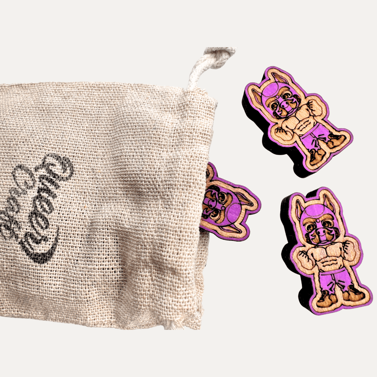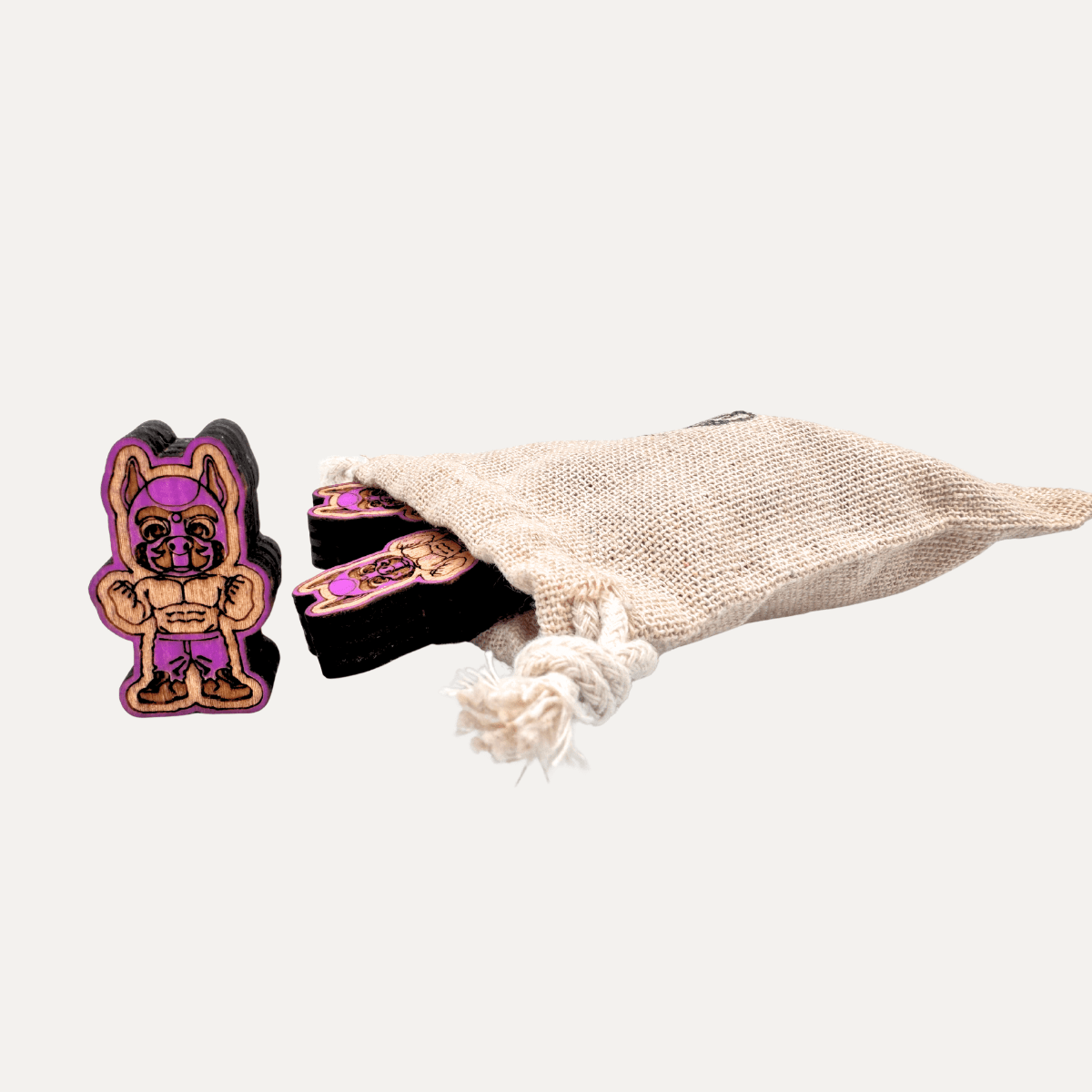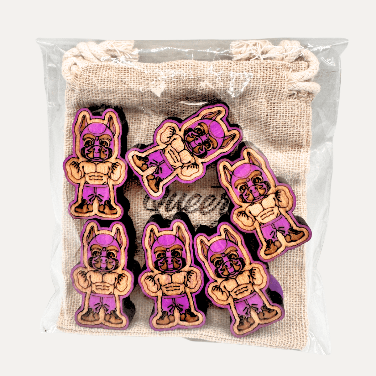 Standing approximately 30mm tall and cut from solid 10mm basswood, this flexing pup may be small, but he brings big energy. Finished in a sexy purple, he rocks his pup hood with confidence, arms flexed and ready for action. Shirtless with laser engraved defined abs, paired with purple jeans and sneakers, this design balances playful athleticism with unmistakable pup attitude.