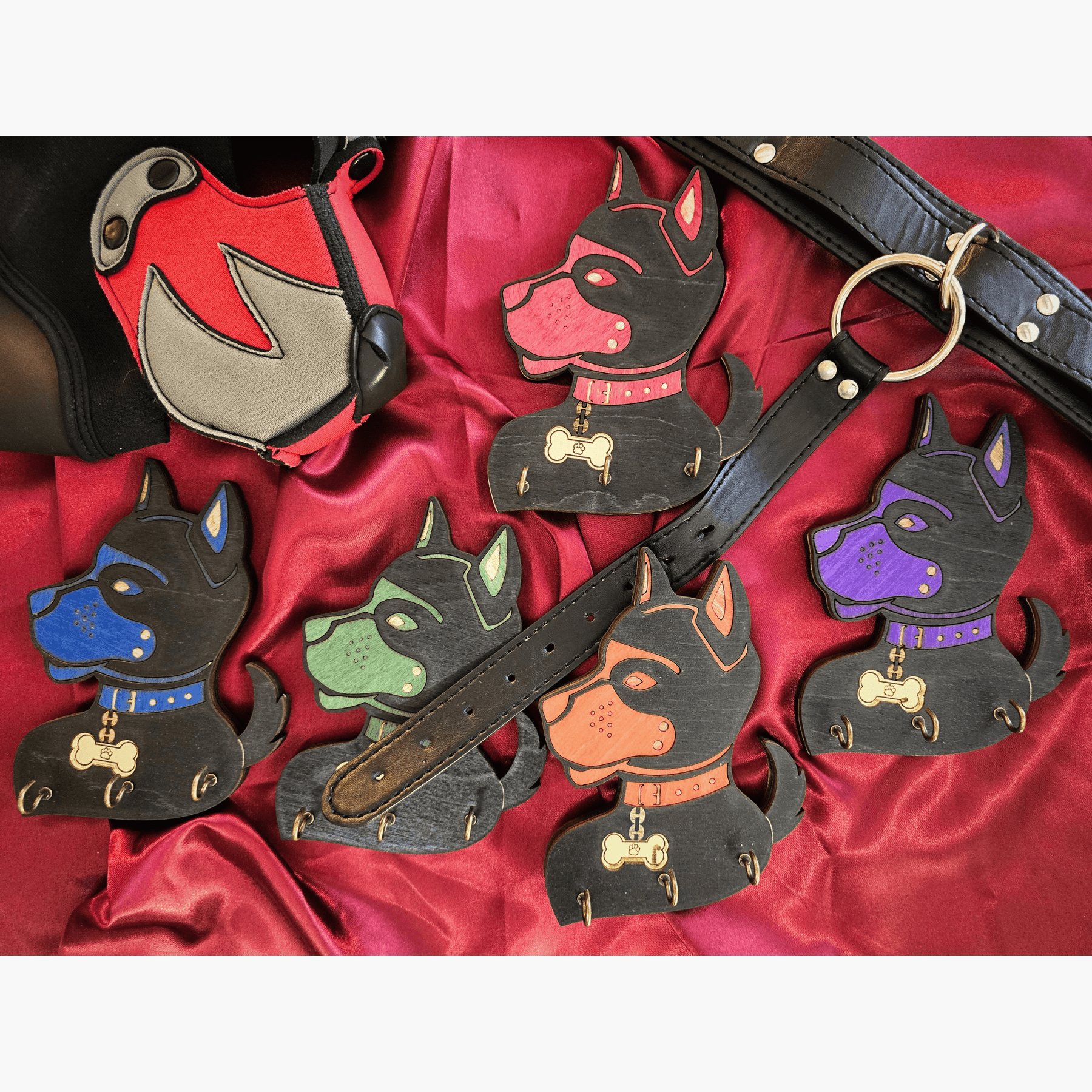 Our Pup Play Kink Key Rack is the perfect blend of leather-inspired kink decor and functional wall organization. Designed for proud pups, handlers, and queer kinksters who need some style hanging their keys, leashes, or collars.